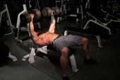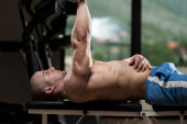 starsze kulturysta jest praca na jego klatce piersiowej