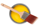 żółtej farby można pędzelkiem z góry na białym tle na białym tle