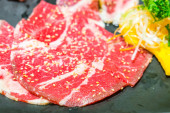 Zdjęcie "Wołowina na liściach Oba w japońskich restauracjach. " może być wykorzystywane do celów osobistych i komercyjnych zgodnie z warunkami zakupionej licencji Royalty-free. Obraz jest dostępny do pobrania w jakości wysokiej rozdzielczości do 5760x3840.
