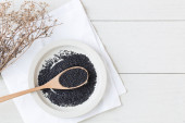 Zdjęcie "Czarne nasiona sezamu na szarym stole. Miejsce na tekst" może być wykorzystywane do celów osobistych i komercyjnych zgodnie z warunkami zakupionej licencji Royalty-free. Obraz jest dostępny do pobrania w jakości wysokiej rozdzielczości do 5760x3840.