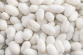 Stos naturalnych kokonów jedwabników jako tło, zbliżenie