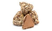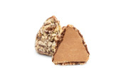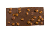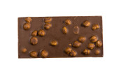 Batonik czekoladowy z całymi orzechami izolowany na białym.
