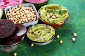 Zdjęcie "Różne pyszne hummuses na białym drewnianym stole, płaski leżak" może być wykorzystywane do celów osobistych i komercyjnych zgodnie z warunkami zakupionej licencji Royalty-free. Obraz jest dostępny do pobrania w jakości wysokiej rozdzielczości do 5760x3840.