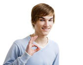 młody nastolatek pozytywne szczęśliwy człowiek skrzyżowane ok