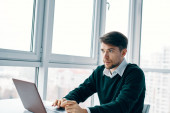 Portret menadżera w szarym garniturze brunetki kaukaskiej a