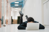 zmartwiony biznesmen w formalnym garniturze. Odpowiadające łechtaczce