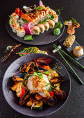 Sushi Zdjęcia różnych potraw na stole, na którym przygotowano imprezę.