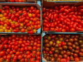 Dużo kolorowych i zdrowych pomidorów na targu ulicznym