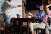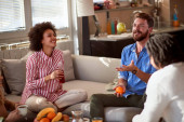Zdjęcie "Młoda, przystojna para biznesowa toastująca w domu w miłej atmosferze po udanym dniu pracy. Biznes, relacje, wypoczynek" może być wykorzystywane do celów osobistych i komercyjnych zgodnie z warunkami zakupionej licencji Royalty-free. Obraz jest dostępny do pobrania w jakości wysokiej rozdzielczości do 5760x3840.