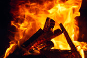 Ogień pali się w kominku, ogień, żeby się ogrzać. Płonące kłody w kominku