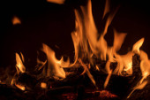 Ogień pali się w kominku, ogień, żeby się ogrzać. Płonące kłody w kominku