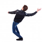 Zdjęcie "Równoważenie młody człowiek w kurtkę. widok z tyłu." może być wykorzystywane do celów osobistych i komercyjnych zgodnie z warunkami zakupionej licencji Royalty-free. Obraz jest dostępny do pobrania w jakości wysokiej rozdzielczości do 5760x3840.