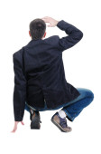 Równoważenie młody człowiek w kurtkę. widok z tyłu.