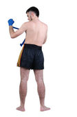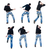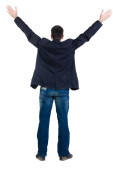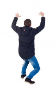 seminyde młody człowiek wskazując na ścianie. widok z tyłu.