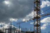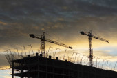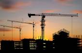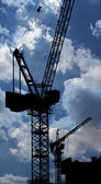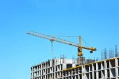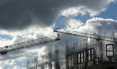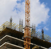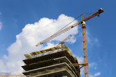 budynek dźwig na tle Multi-piętrowy budynek w budowie