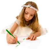 młoda dziewczyna malowane białą księgę na białym tle