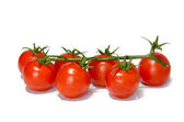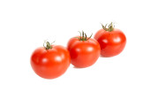 Cztery czerwone mokre pomidory odizolowane na białym tle. Studio zdjęcie