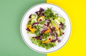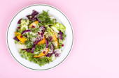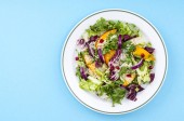Lekka sałatka wegetariańska w talerzu na jasnym tle. Koncepcja zdrowego stylu życia. Studio zdjęcie