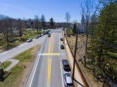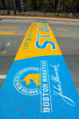 2018 Boston Marathon Start Line on Main Street in town of Hopkinton, Massachusetts MA, USA.