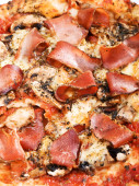 Makrofotografia pizzy zbliżenie jako tło. Makrofotografia żywności. fast food dostawy pomidorów