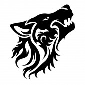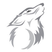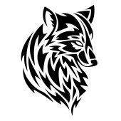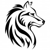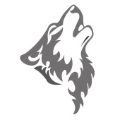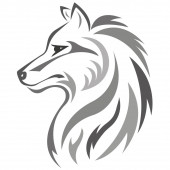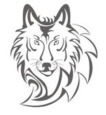 Silhouette, contour of the wolf's muzzle in gray tones on a white background is drawn with lines of different thickness. Design for animal logo, tattoo, decor, painting, hunting club, company. Vector