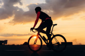 Grupa przyjaciół rowerzystów jazda na rowerze wyścigowym na Sunset Highway, zachodzie słońca konkurs rower