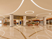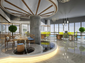 3d renderowania luksusowego lobby recepcji hotelowej
