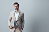 Zdjęcie "Biznesmen w garniturze siedzi na białej sofie w jasnym pokoju, widok z boku" może być wykorzystywane do celów osobistych i komercyjnych zgodnie z warunkami zakupionej licencji Royalty-free. Obraz jest dostępny do pobrania w jakości wysokiej rozdzielczości do 5760x3840.
