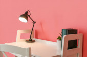 Nowoczesne miejsce pracy z lampą na tle koloru