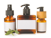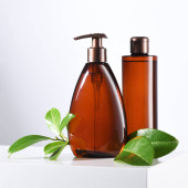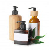 Butelki z naturalnym szamponem na białym tle