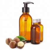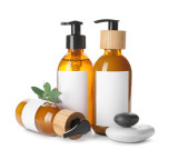 Butelki z naturalnym szamponem na białym tle