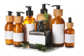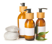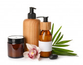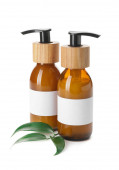 Butelki z naturalnym szamponem na białym tle
