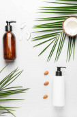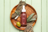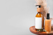 Butelka z naturalnym szamponem na drewnianym tle