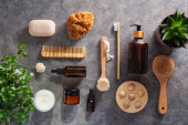Zdjęcie "Butelka z naturalnym szamponem, mydłem i pędzlami na grunge tle" może być wykorzystywane do celów osobistych i komercyjnych zgodnie z warunkami zakupionej licencji Royalty-free. Obraz jest dostępny do pobrania w jakości wysokiej rozdzielczości do 5760x3840.