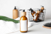 Butelka z naturalnym szamponem na jasnym tle