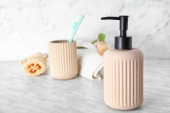 Butelka z naturalnym szamponem na jasnym tle