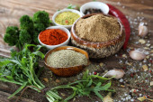 Zdjęcie "Miski z różnymi przyprawami i rozmarynem na jasnym tle, zbliżenie" może być wykorzystywane do celów osobistych i komercyjnych zgodnie z warunkami zakupionej licencji Royalty-free. Obraz jest dostępny do pobrania w jakości wysokiej rozdzielczości do 5760x3840.