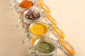 Zdjęcie "Słoiki z różnymi przyprawami na drewnianym tle" może być wykorzystywane do celów osobistych i komercyjnych zgodnie z warunkami zakupionej licencji Royalty-free. Obraz jest dostępny do pobrania w jakości wysokiej rozdzielczości do 5760x3840.