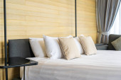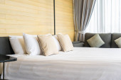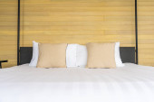 Biała wygodna poduszka na dekoracji łóżka wnętrze pokoju w ośrodku hotelowym