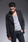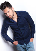 widok z boku smutny człowiek dorywczo patrząc w dół