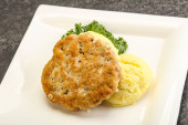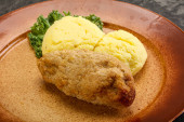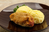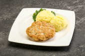 Chrupiący kotlet z kurczaka z mięsa mielonego z puree ziemniaczanym