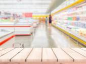 drewniane deski z abstrakcyjnym nieostrym tłem supermarketu