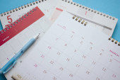 strona kalendarza z bliska na niebieskim tle biznes planowanie spotkanie koncepcja