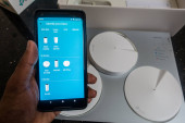 Amazon Alexa Echo Dot urządzenie na stole obok sofy