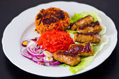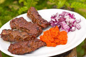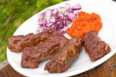 cevapi z ryżem, ajwar i cebula