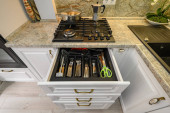 Zdjęcie "Close up widok otwartej szuflady kuchennej z sztućcami" może być wykorzystywane do celów osobistych i komercyjnych zgodnie z warunkami zakupionej licencji Royalty-free. Obraz jest dostępny do pobrania w jakości wysokiej rozdzielczości do 5760x3840.