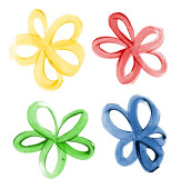 Odizolowane sztuczne kwiaty wykonane ze skrobi kukurydzianej. Jasne kolory sztuczne kwiaty w tematach sztuki dla dzieci jedno białe tło.