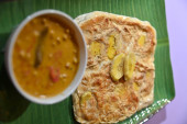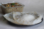 Sfermentowane naleśniki ryżowe wykonane z sfermentowanego ciasta ryżowego i mleka kokosowego serwowane wraz z mielonego warzyw sos kokosowy nerkowca. Ulubione południowych Indian, znany jako Appam kurma warzywna