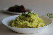 Ryż cytrynowy przygotowany przez przyprawianie gotowanego ryżu z nasionami gorczycy, smażoną soczewicą, orzeszkami ziemnymi, orzechami nerkowca, zielonymi chili, suchymi czerwonymi chili, liśćmi curry, asafoetidą, kurkumą i sokiem z limonki.