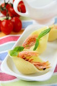 Zdjęcie "zakąska makaron muszle z krewetek w białej płytce" może być wykorzystywane do celów osobistych i komercyjnych zgodnie z warunkami zakupionej licencji Royalty-free. Obraz jest dostępny do pobrania w jakości wysokiej rozdzielczości do 5760x3840.